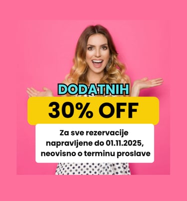 Selfie prostor + Muzika + Dodatni stolovi i stolice